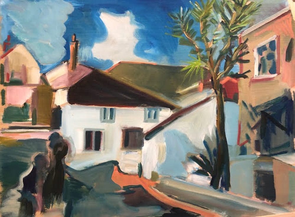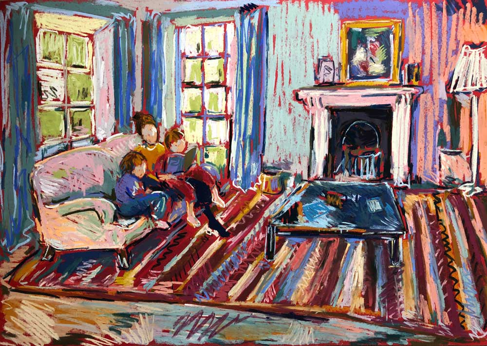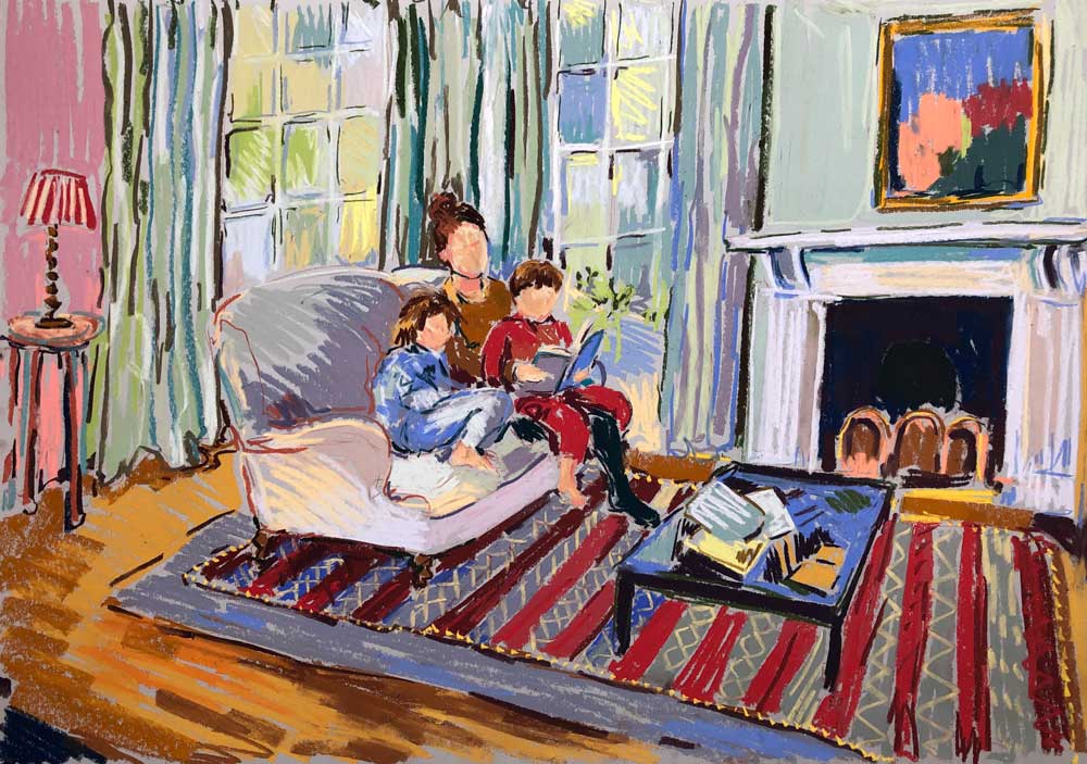 Amy’s work encompasses her experience of motherhood, with emotive domestic scenes of mothers with children, as well as her connection to place and her sense of belonging, whether in London cityscapes, returning to her Cornish roots, or drawing en plein air on the Isle of Man, where she is currently living with her young family.