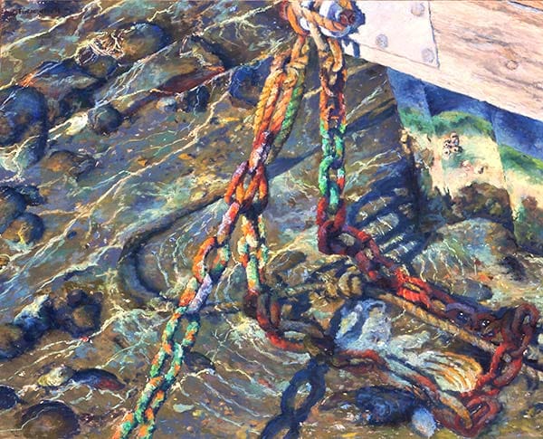 It speaks to me, calls to me, that is the first impulse I get when I am compelled and commanded to create a new piece. I have no control, I must paint it, put those impulses into strokes of color; it is an insatiable desire to try to capture the fleeting moments of life and the world around us. Its voice makes me think of not just the present, how I am seeing the light hitting a leaf on a tree or the reflection of said tree in a pond. The sound of curling water around a rock in a stream that flows on a soft summer day or how war is waged between the shore and an angry sea. It is the sun crawling across the landscape, kissing the top of the long grass, or the chill of winter with its own unique colors that melt and give way to the thoughts of impending spring. It is not just the here and now I hear when the land, skies, sea speak to me, but I hear the whispers of those who walked these same fields, woods and shores before me, the call of birds, hum of insects, the wind in the trees, heat of a day; it is all these things and then some that I look to leave in those magical colors I have layered into paper and canvas for those who will walk these places long after I am gone.