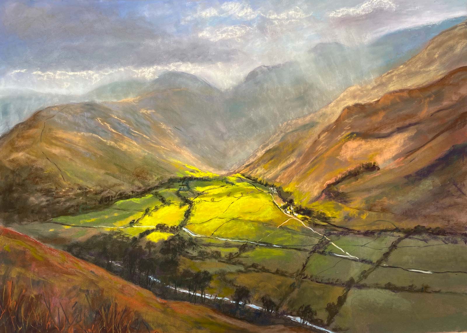 In hypnotherapy a safe place refers to a place of calm, peace and joy where you can escape to in your imagination. My paintings are intended to be ‘safe places’ that make my soul feel good. I work mainly in soft pastels because I love the vibrancy and immediacy of them and the way they blend to create mood and atmosphere.