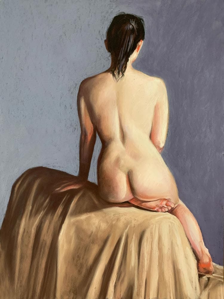 She works primarily in pastel and charcoal as she loves the immediacy and tactility of those mediums and her works are collected by international art collectors worldwide. Her subject matter varies but she finds she is particularly drawn to portraiture and figurative works due to her love of life drawing which was instilled during her time studying at Grays. She has recently returned to painting landscapes and enjoys the challenges presented when working en plein air.
