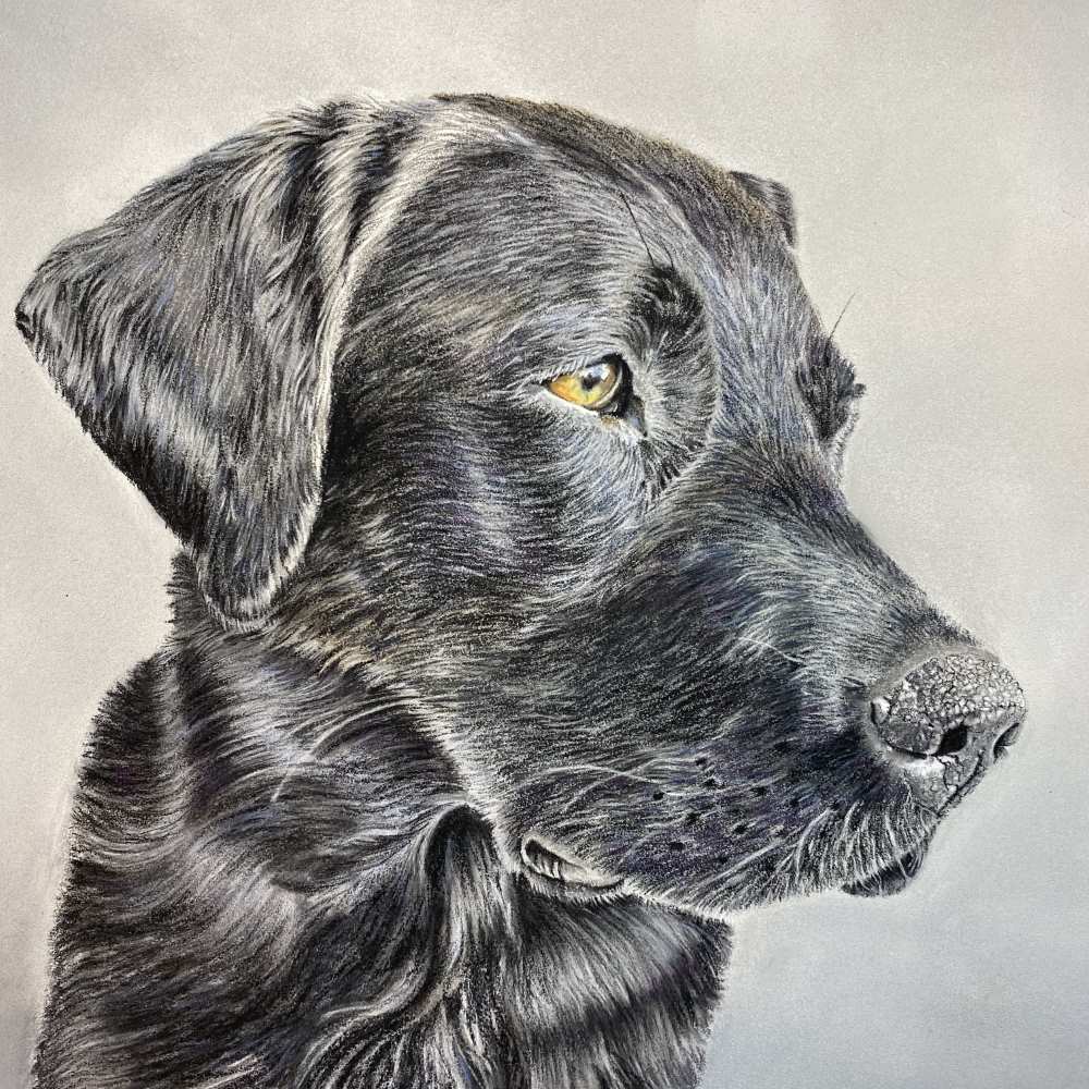 Full disclosure here, we have two dogs of our own, a black Labrador and a rescue Greek Hare Hound from Crete. Together with my husband it makes up our pack. When I started out on my artistic career it seemed an obvious step to offer pet portrait commissions so I thought I’d share a bit of my journey with you.