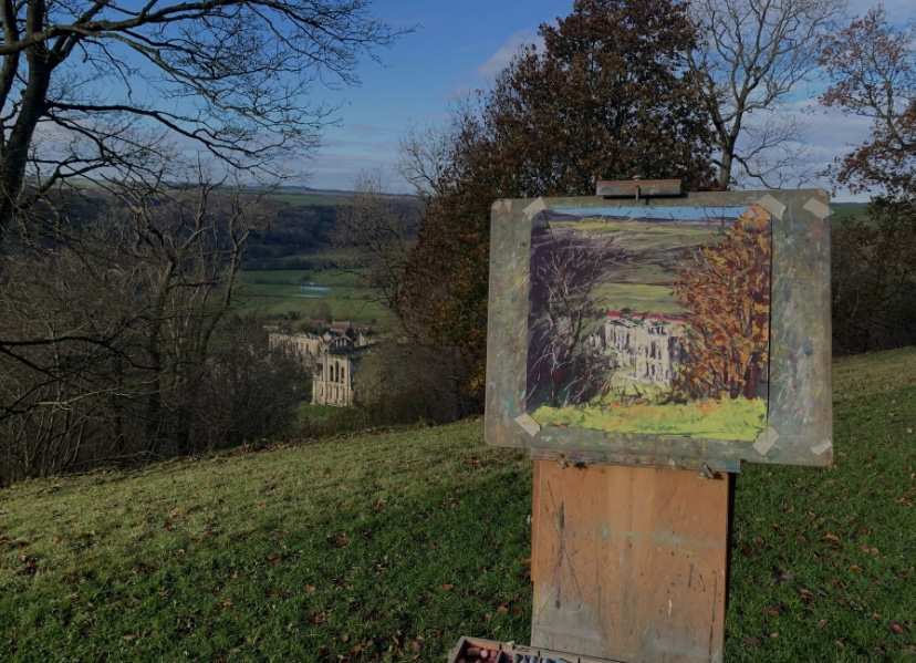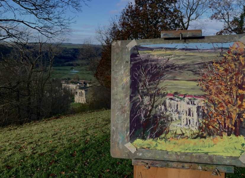 In this part 2 short video of my day at Rievaulx Terrace, a National Trust property in the North York Moors, I seek to capture the majesty and beauty of the view of Rievaulx Abbey (English Heritage) far below the Terrace, set in a late Autumn landscape. I am using Unison Colour pastels on SAIT P500 (not P400 as I mention in the video!) black sanded paper. Filming is by Tony Parkin of T.P. Visuals