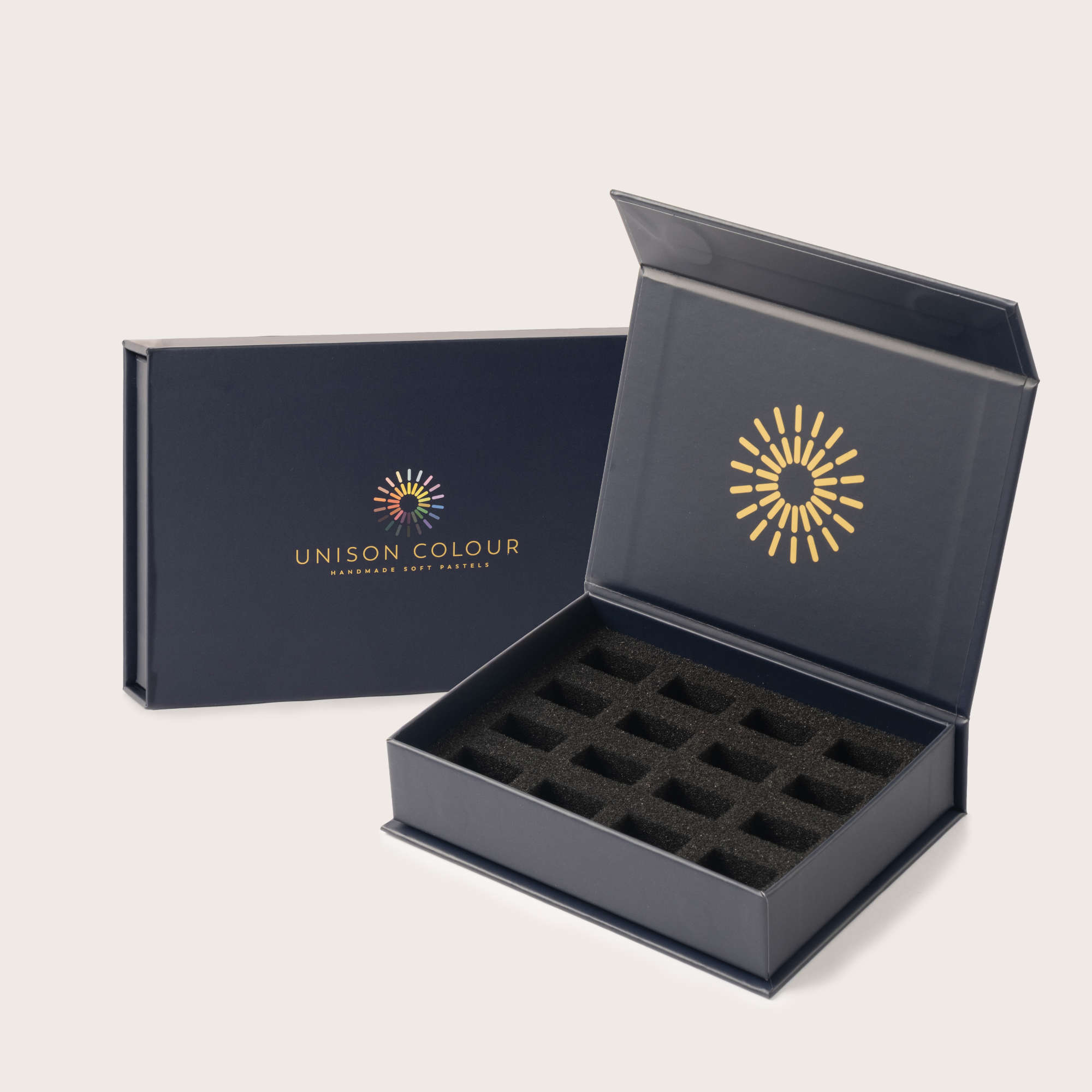Our high quality blue pastel box, ready to accommodate 16 half sticks.