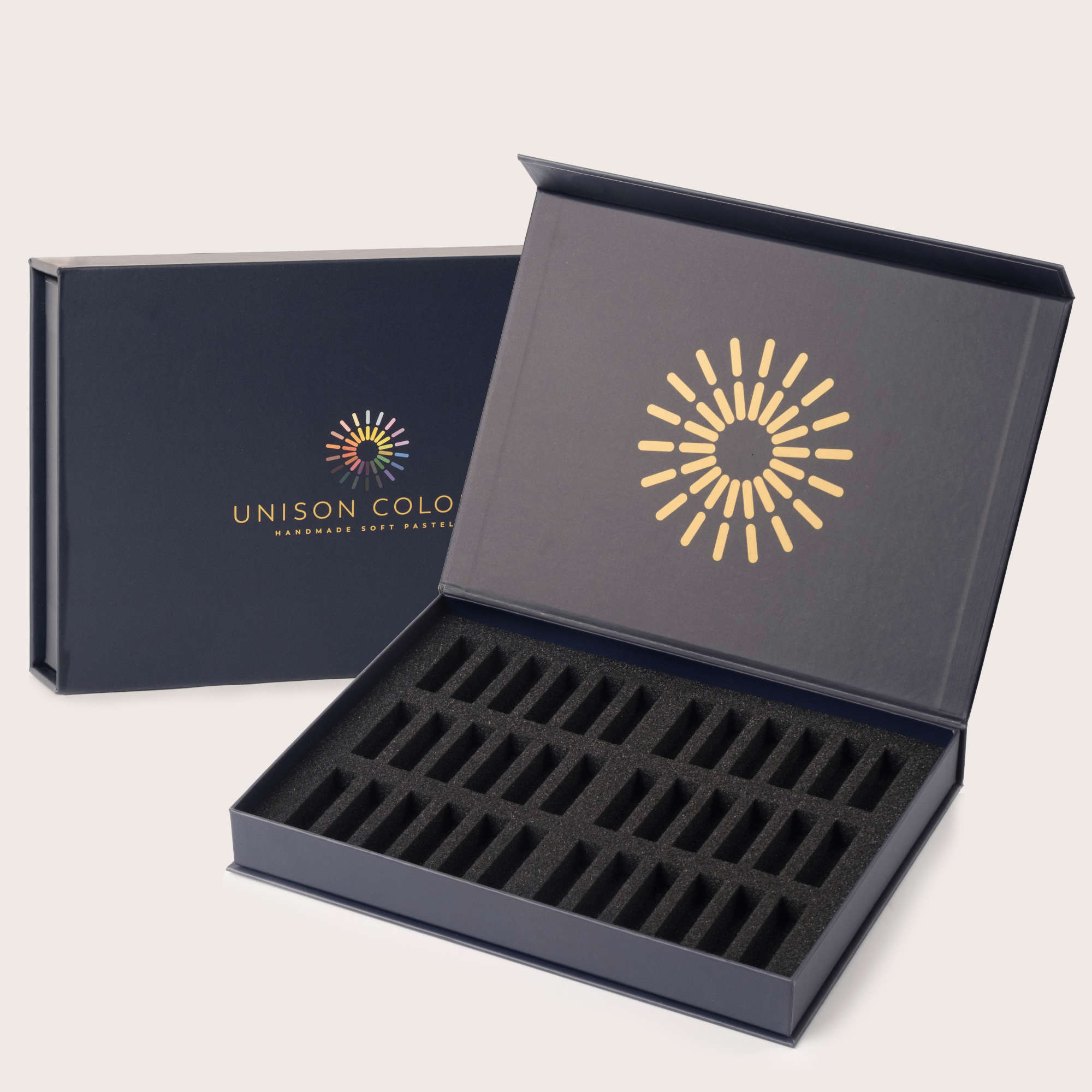 Our high quality blue pastel box, ready to accommodate 36 small sticks.
