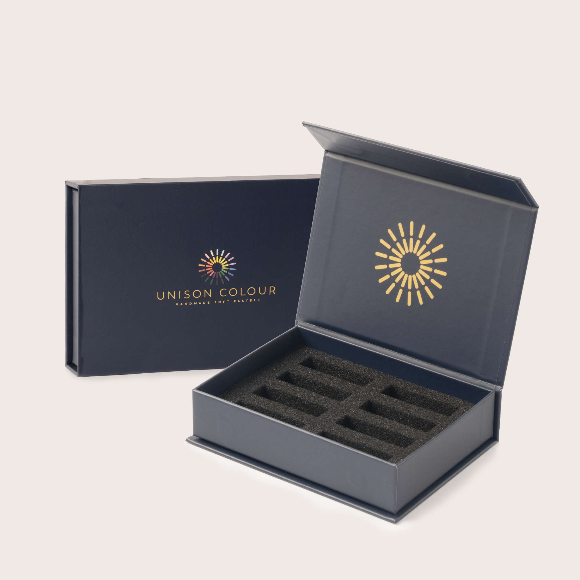 Our high quality blue pastel box, ready to accommodate 8 small sticks.