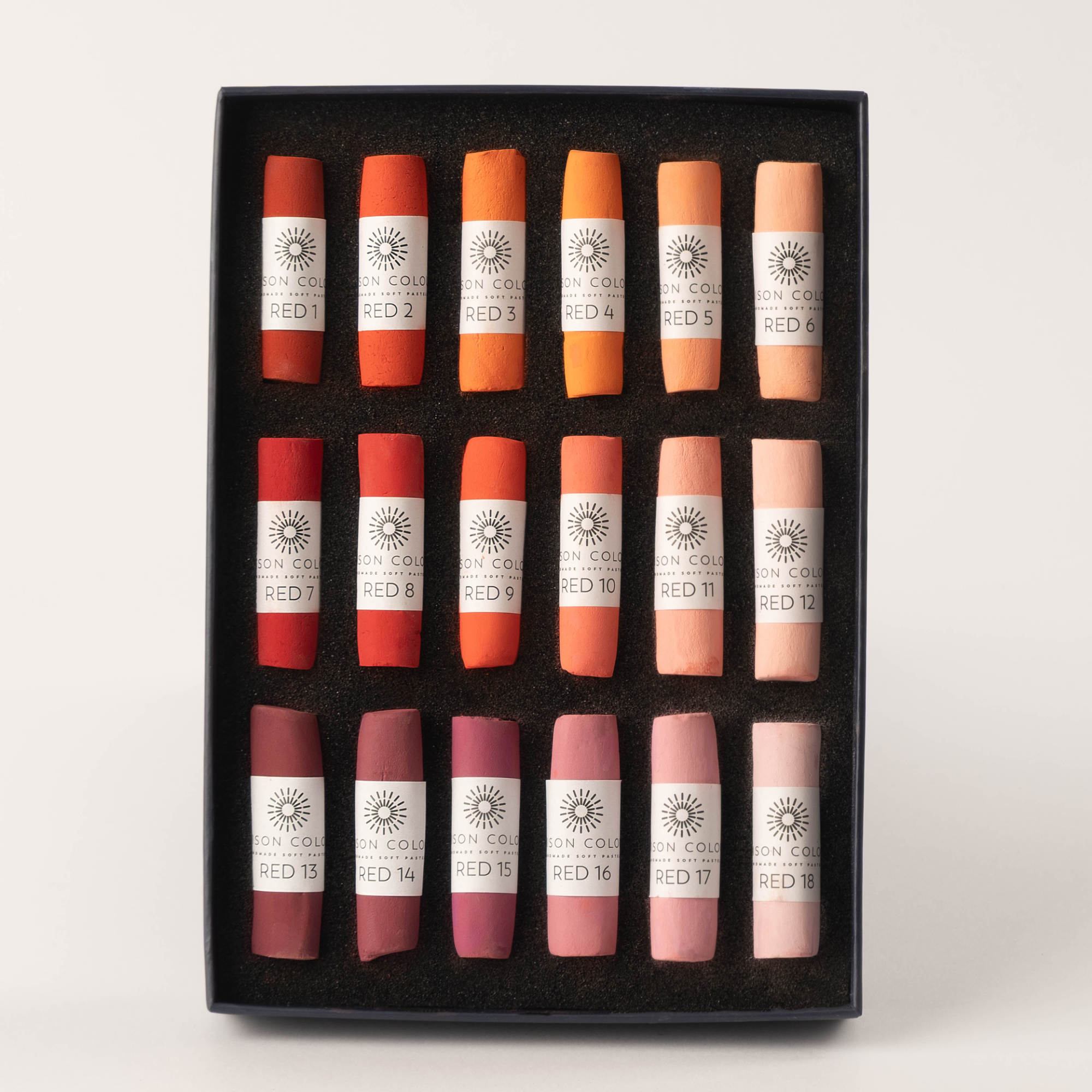 Please do bear in mind that our pastels are hand made from a variety of traditional pigments, all of which have their own characteristics. This means that size does fluctuate ever so slightly, and the softness varies between the different colours. We do, of course, keep well within our criteria for the perfect pastel, but if the pastels you’ve received don’t quite live up to your expectations, please get in touch and we’ll make sure it’s put right.