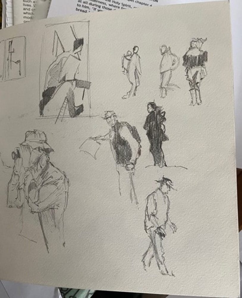 I always remember attending life classes where the model changed position every 5 minutes which concentrated the mind no end. You had to be quick to get the essential bits down on to the paper. I am enclosing examples from ‘Masterchef, the Professionals’, the ‘Repair Shop’ and the TV comedy ‘Outnumbered’ as illustrations of figures and figures.