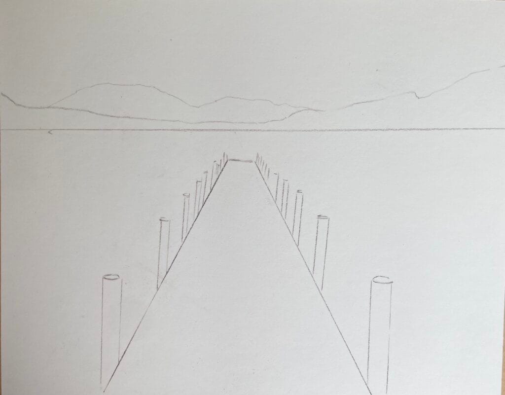 Don’t worry if you don’t have my exact colours in pastels or pencils, any neutral greys and earth tones work for the mountains. It is important to have a bright white and a deep dark for highlights and contrasts.
