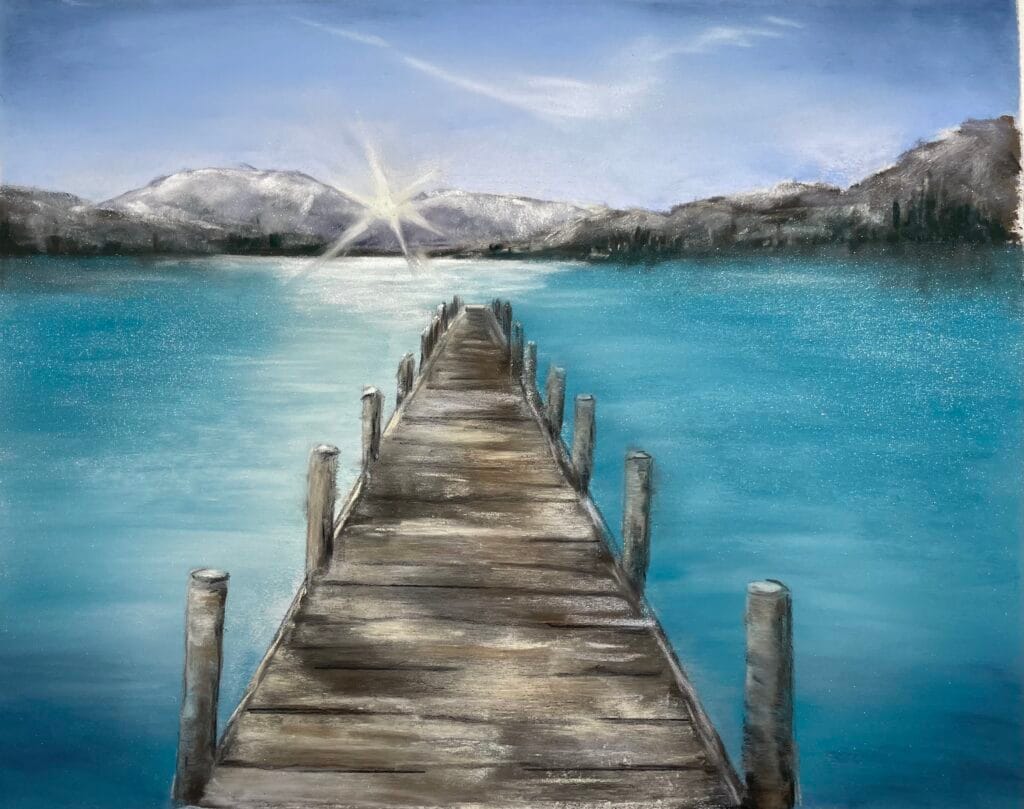I have done work throughs of this painting on more economical Canson Mi-Teintes which was fun too. But I like the precision you can get easily on pastelmat or a surface like Canson Mi-Teintes Touch.